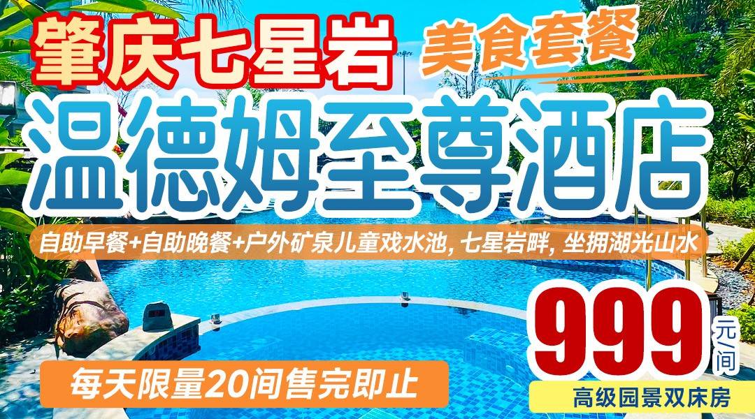 【双十一狂欢嘉年华】美食套票~¥999起住肇庆七星岩温德姆至尊酒店-高级园景双床,享双人自助早餐、晚餐+户外矿泉+汗蒸理疗+恒温泳池、冲浪池