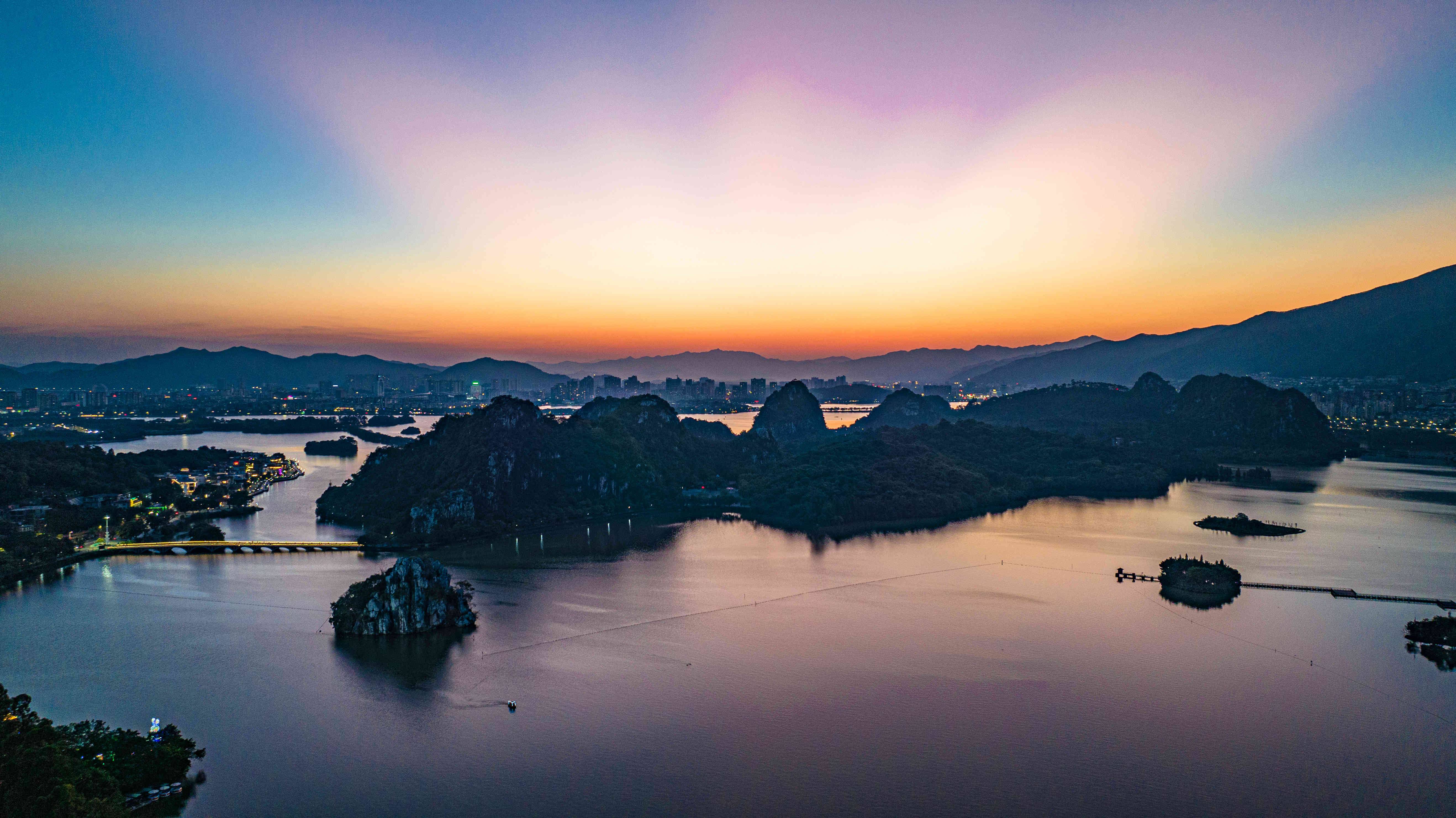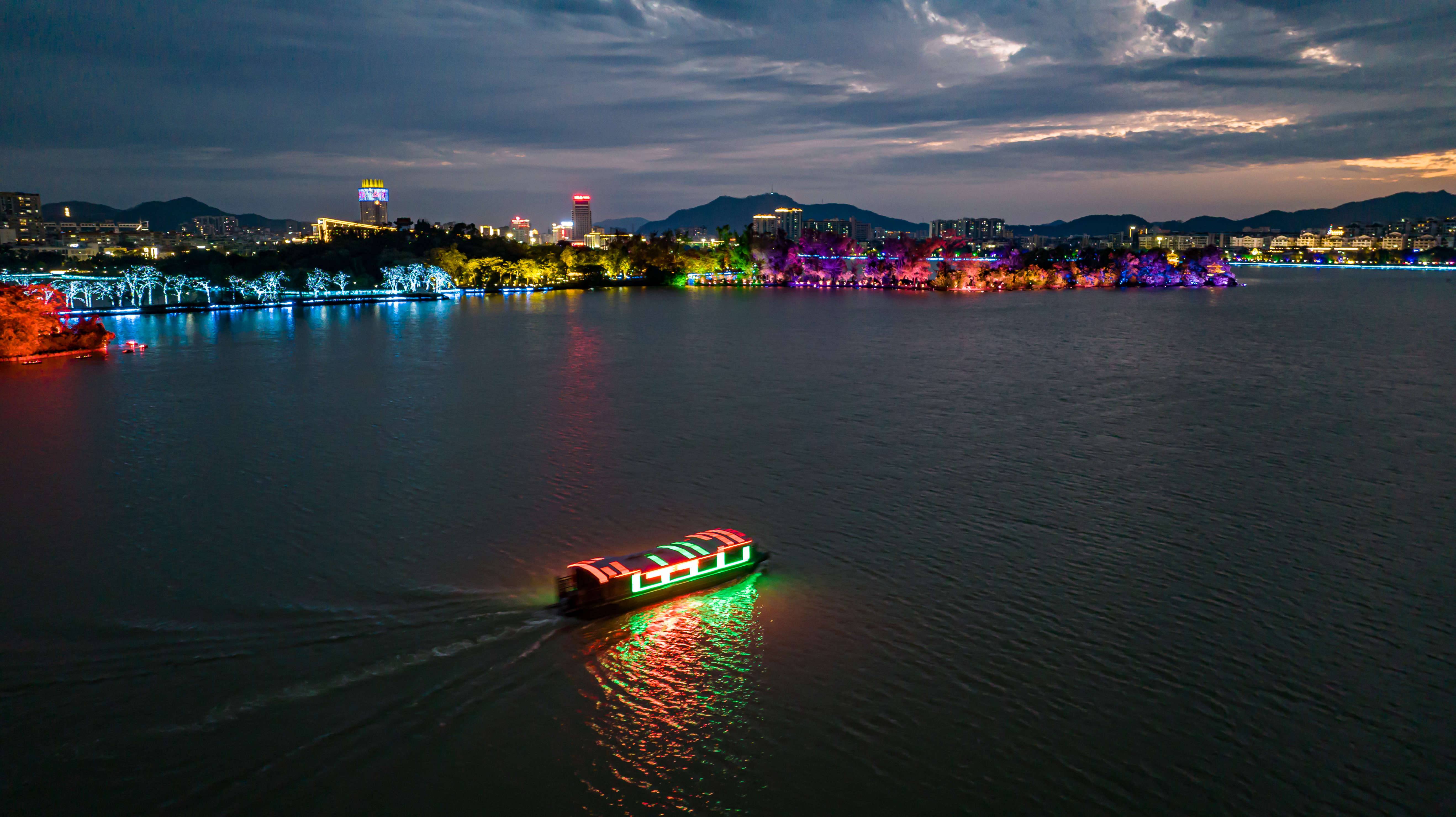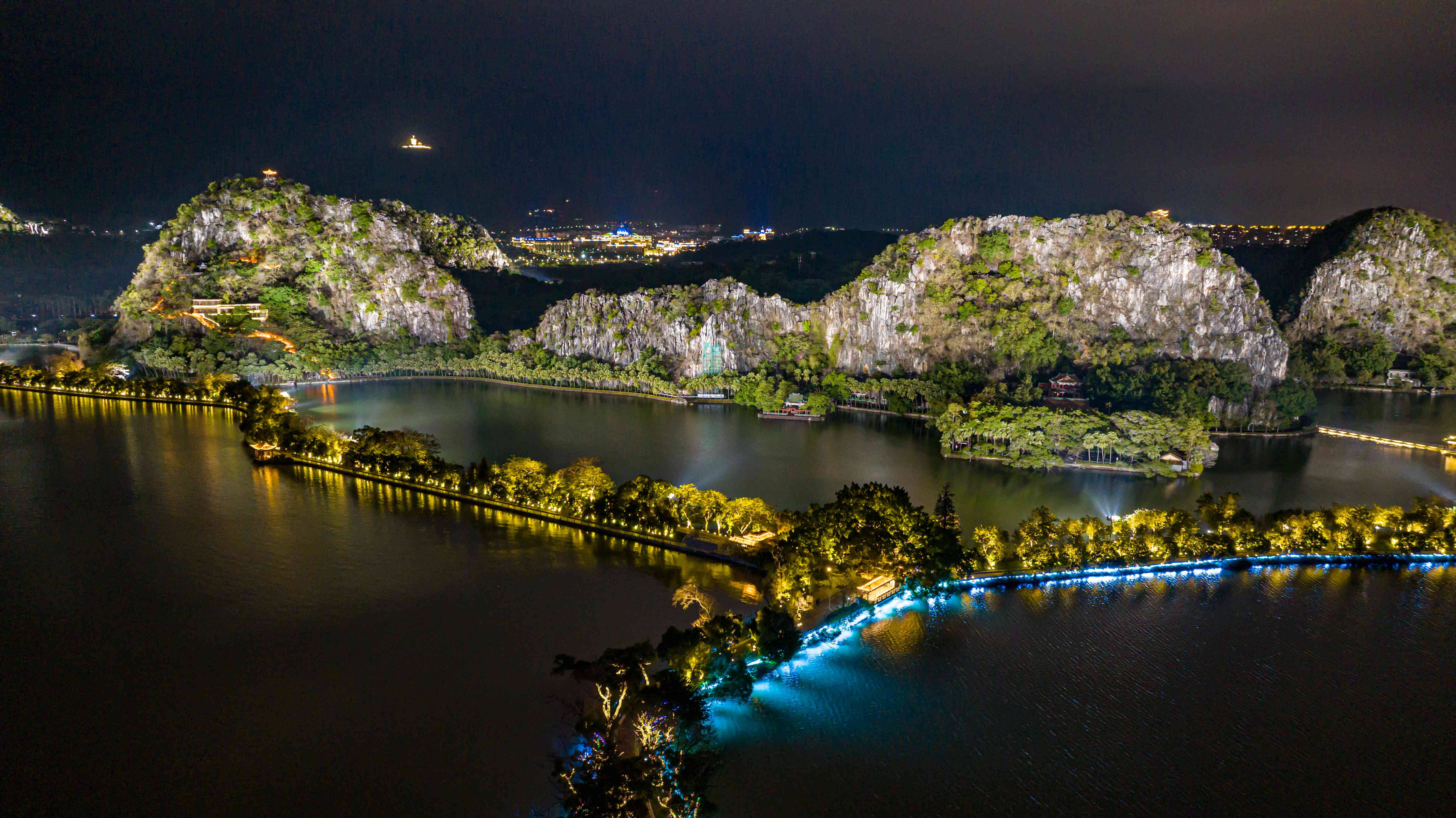 与七星岩湖光组成动态光影秀,