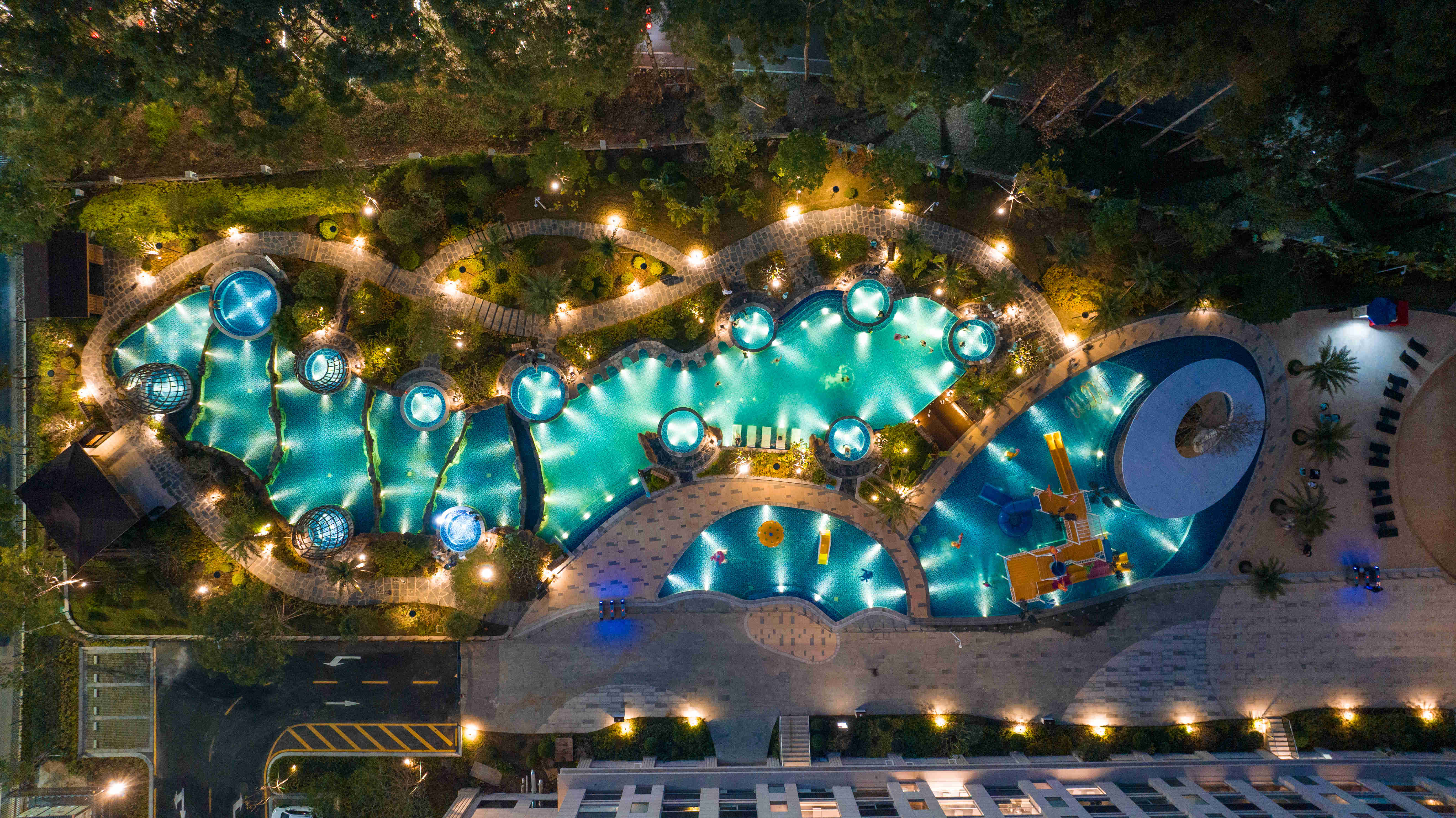 夜间搭配星光灯带营造浪漫氛围。