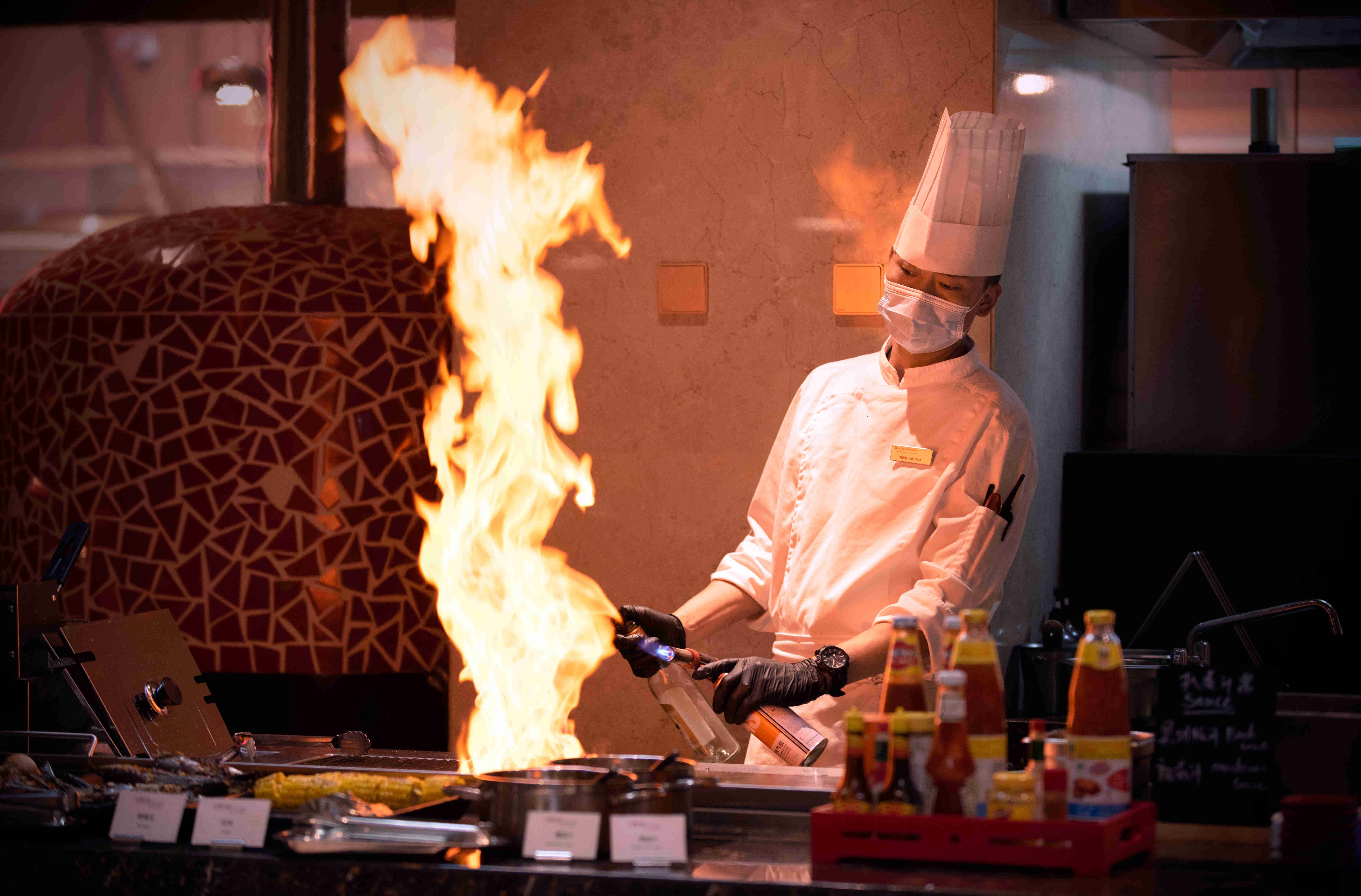 客人可以一边享用美食,一边欣赏厨师的精彩表演。