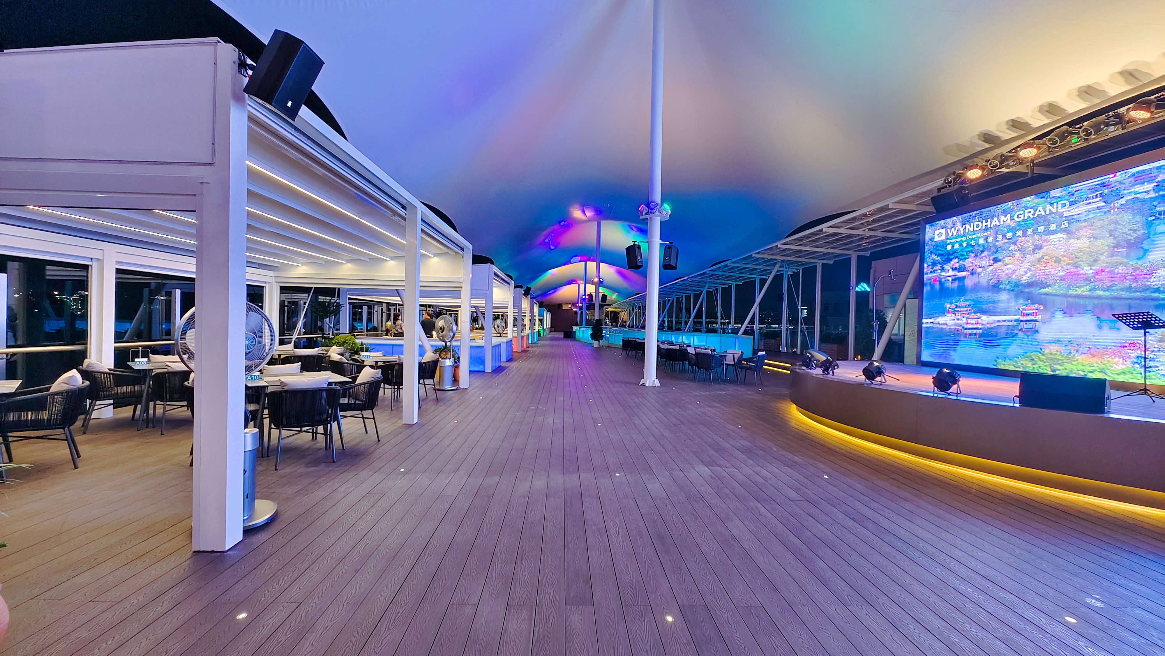 晚间的户外露台以星光灯带